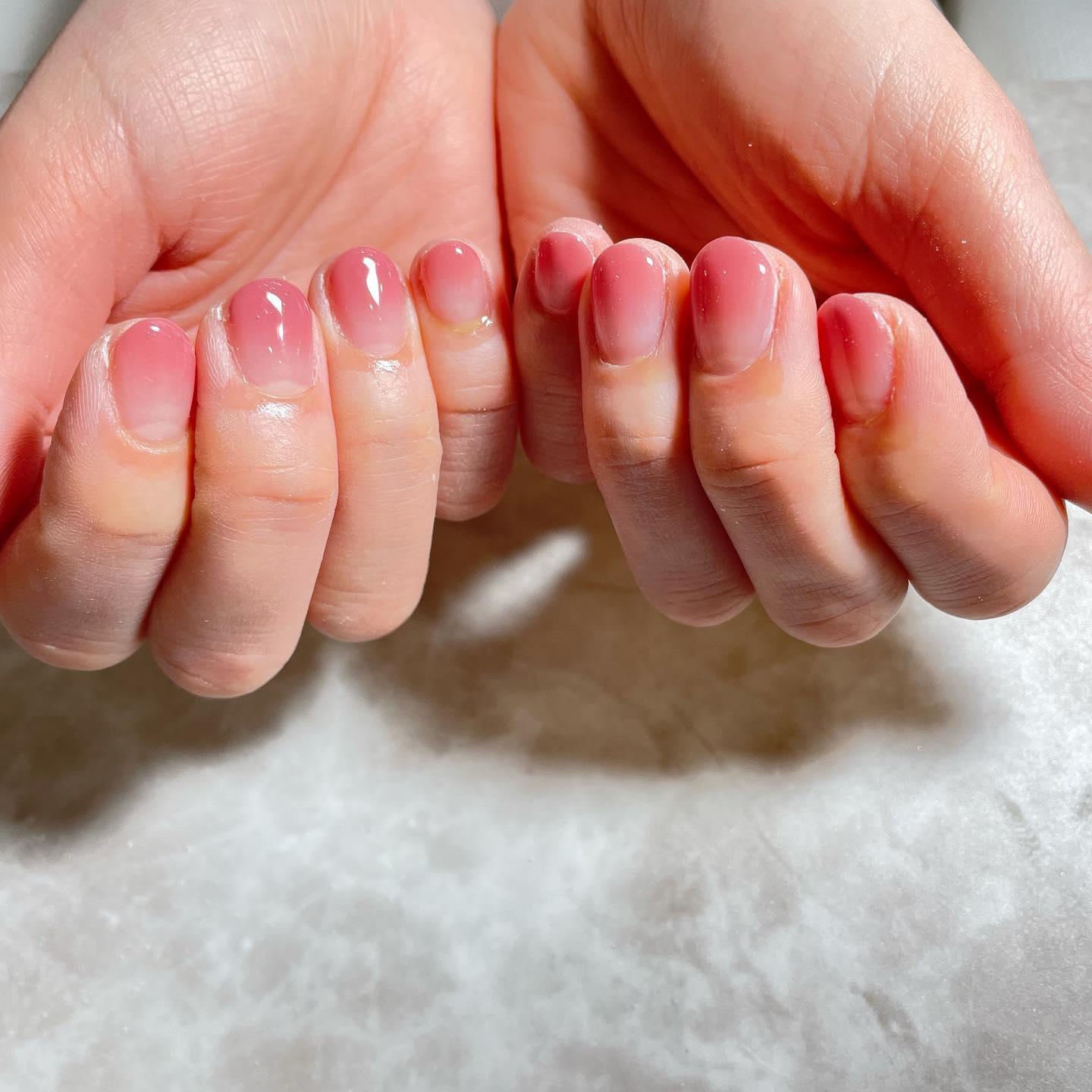 ちょっと濃いめのピンクでグラデーションすると爪にお花が咲いているみたいでとても可愛いです🏅